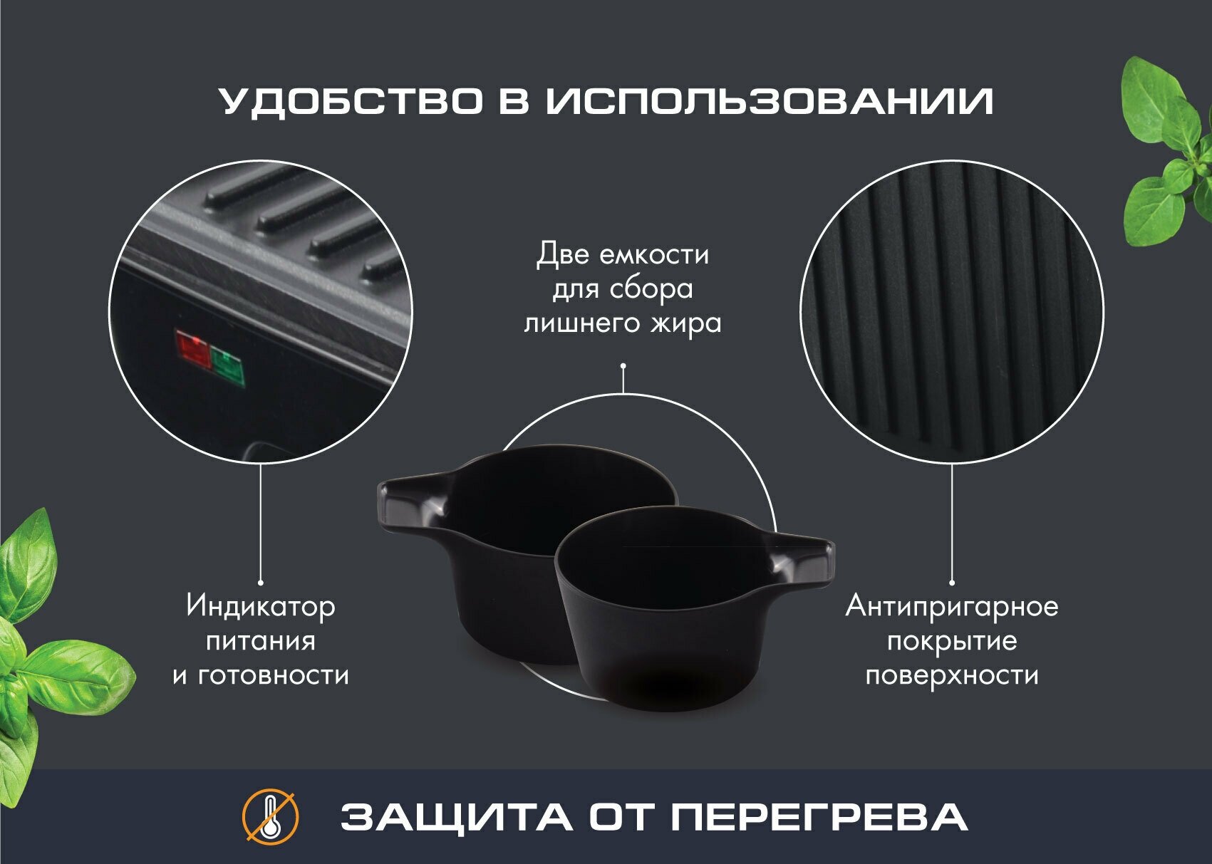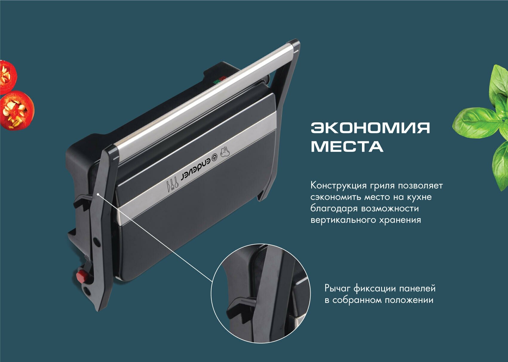 Гриль электрический со съемными панелями ENDEVER GRILLMASTER-245 / 5 авторежимов / открывается на 180 градусов