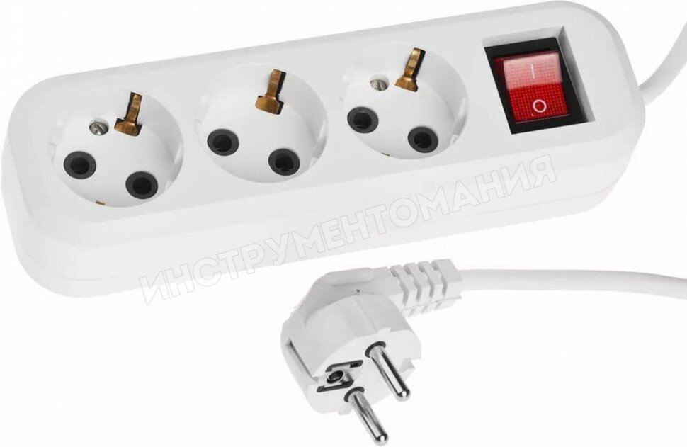 Удлинитель СИБИН 55034-5, 3 розетки, с/з, 6А / 2200 Вт белый 5 м
