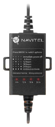 Аксессуар Navitel Контроллер питания черный 4.5м Вход 1240 В, выход 5В 2А, защита от разряда аккумулятора, таймер (упак.:1шт) информация: