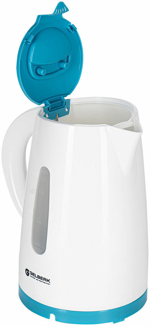 Чайник GELBERK GL-461, белый/бирюза 1,7л., пластик