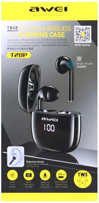 TWS гарнитура AWEI T28P BT 5.3, вкладыши, LED дисплей (черный)