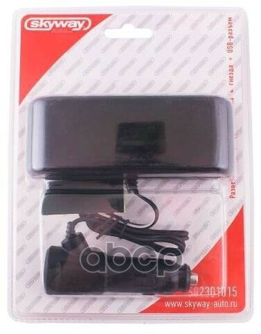 skyway Разветвитель автомобильный прикуривателя, 2 гнезда + USB, предохранитель, 10А, USB 800mA, SKYWAY
