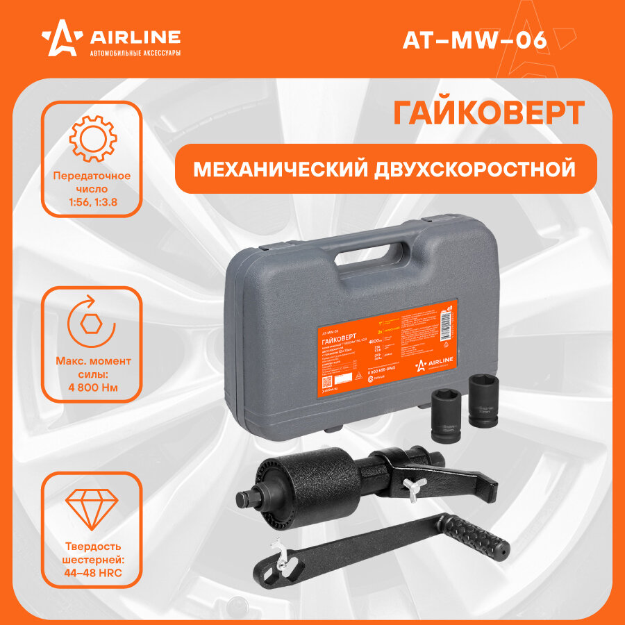 Airline Гайковерт механич. 1" 4800Нм 1:56, 1:3.8 двухскорост. с головками 32 и 33мм пласт. кейс (AT-MW-06)