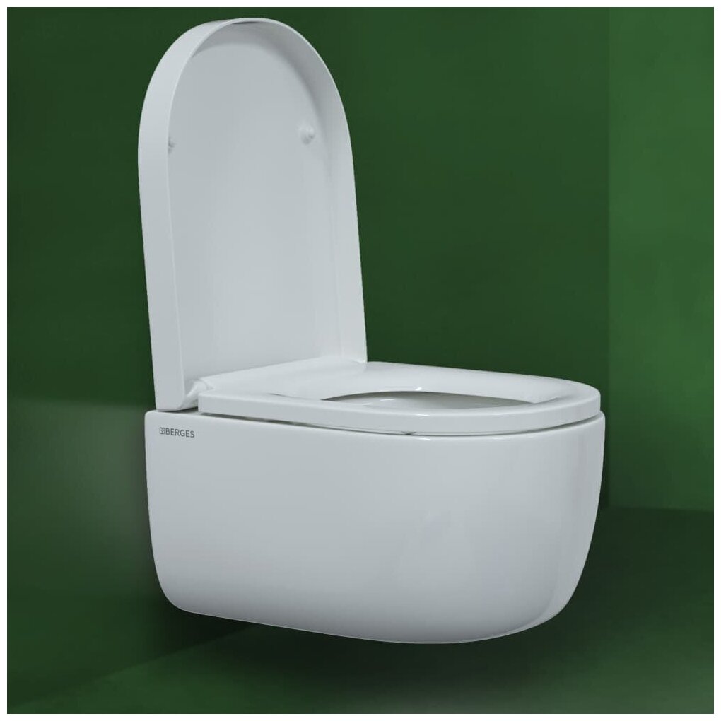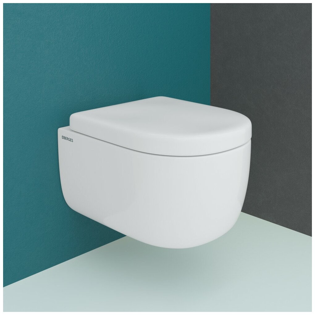 10 цен на Унитаз Berges Ego 082122 подвесной, безободковый, с сиденьем микролифт, цвет белый