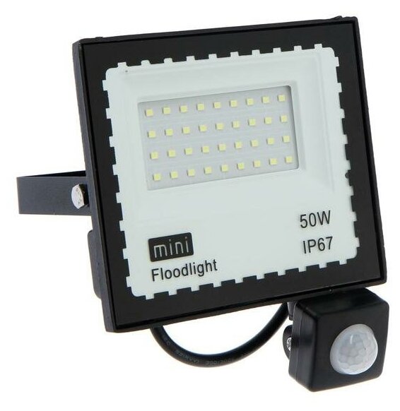 10 цен на Прожектор светодиодный, 50 Вт, 4000 Лм, 6500К, Датчик движения, IP66