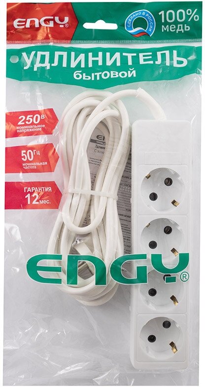 Удлинитель Engy Премиум 4 розетки, 4 розетки, б/з, 10А / 2300 Вт
