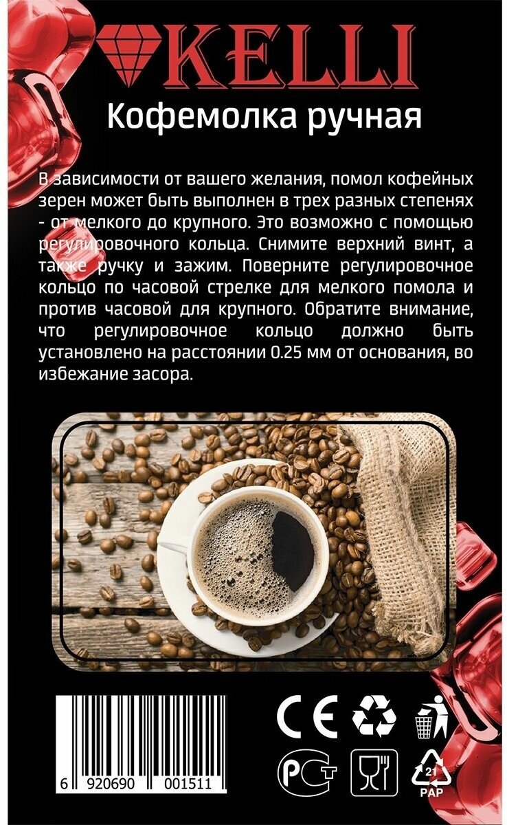 Кофемолка ручная. KL-0151. Объем чаши: 50Г. информация: