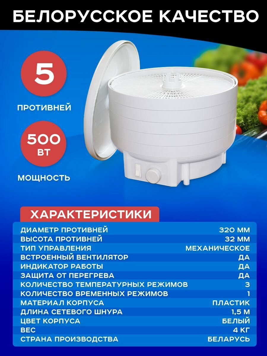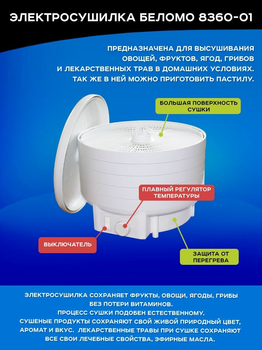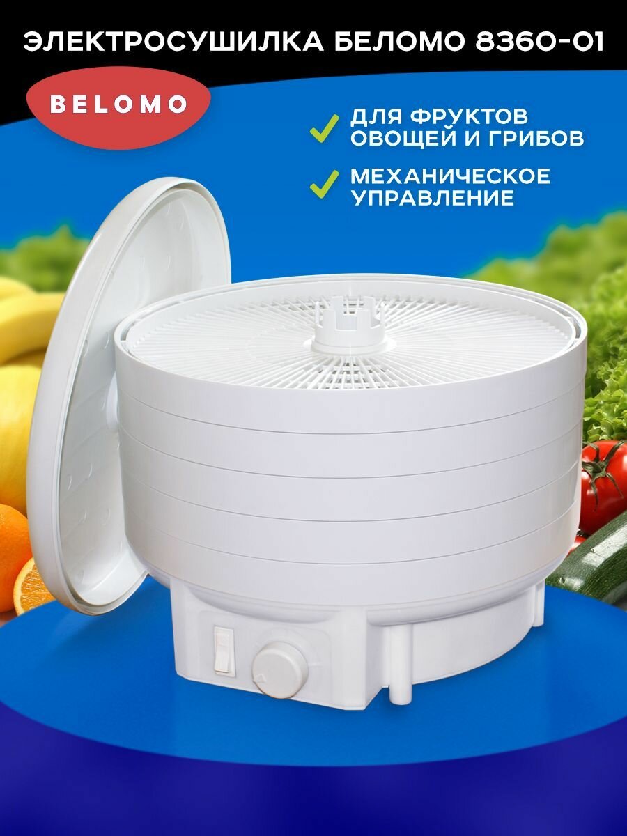 Электросушилка БелОМО 8360-01 для фруктов, овощей, грибов с механическим управлением информация: