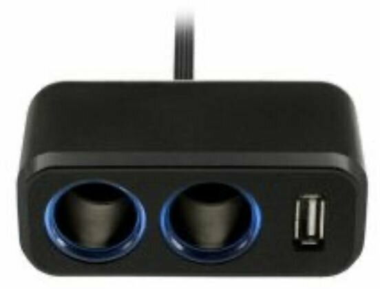 Разветвитель на 2 автомобильных розетки 1 USB с кабелем Neoline SL-211 информация: