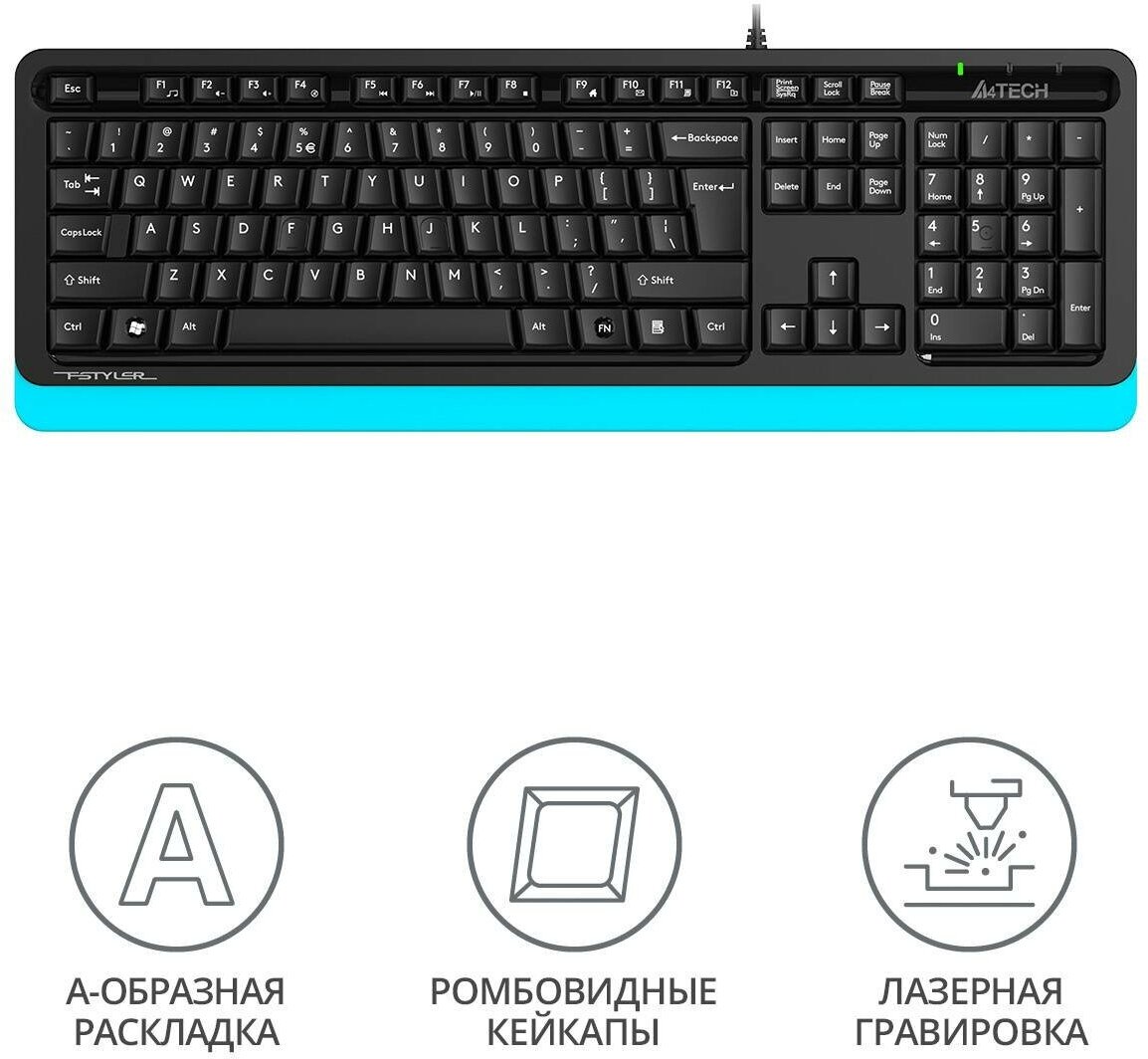 Клавиатура A4TECH Fstyler FKS10, USB, черный + синий [fks10 blue]