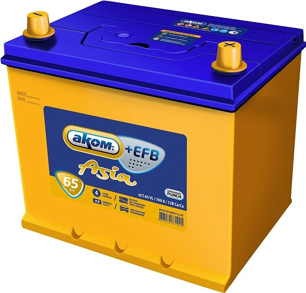 Автомобильный аккумулятор АКОМ ASIA+EFB 65 65АЧ 700A оп (232X173X225) 75D23 232x173x225 информация: