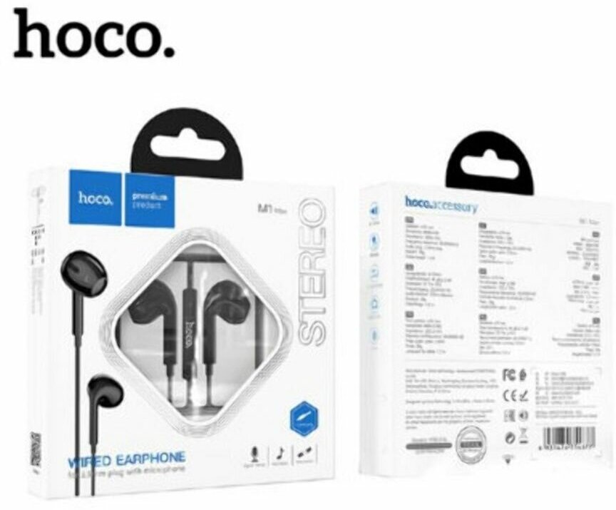 Наушники внутриканальные HOCO M1, Max, Jack 3.5мм, 1.2 м, цвет: чёрный