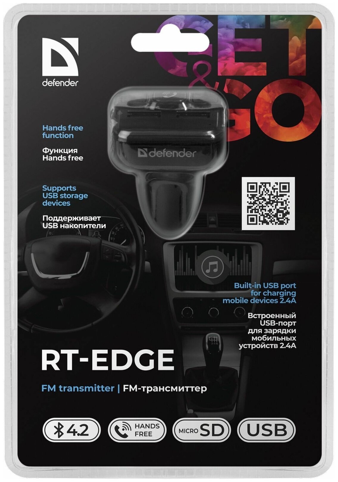 Модулятор Defender RT-Edge BT/HF, черный, USB 2.4 A, Количество USB-портов для зарядки: 1 шт.