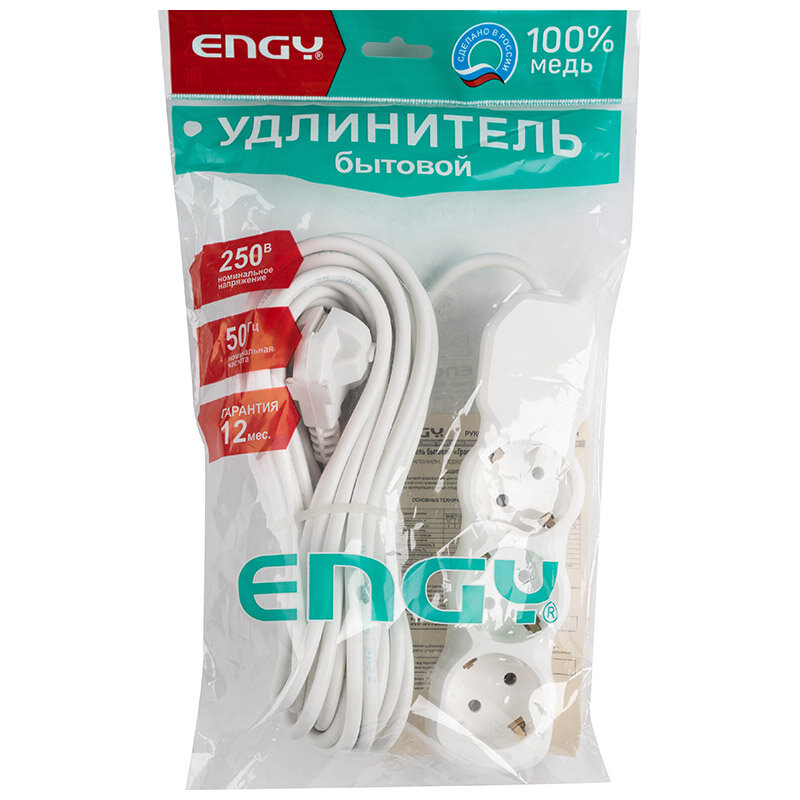 Удлинитель Engy Премиум 4 розетки, 4 розетки, б/з, 10А / 2300 Вт