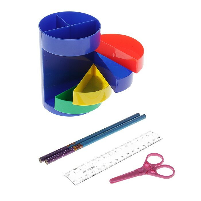 10 цен на Настольный набор детский "Веер-радуга", из 5 предметов: подставка, ножницы, линейка, 2 карандаша, микс