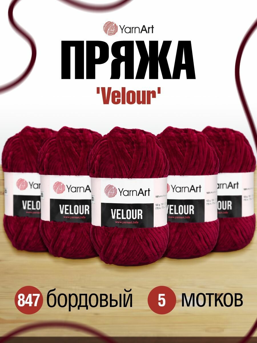 Пряжа для вязания YarnArt 'Velour' 100г, 170м (100% микрополиэстер) (847 бордовый), 5 мотков