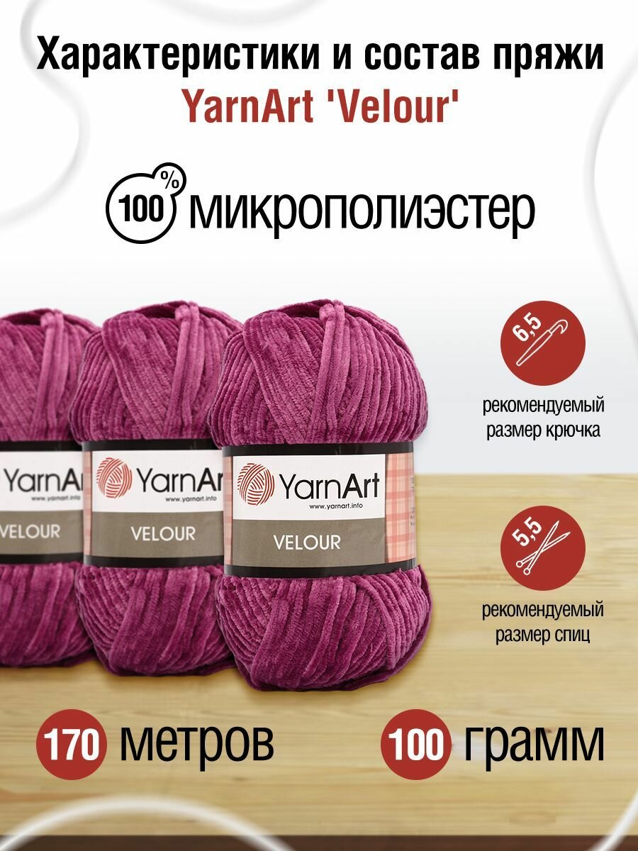 Пряжа для вязания YarnArt 'Velour' 100г, 170м (100% микрополиэстер) (855 пурпурный), 5 мотков 1 193 ₽