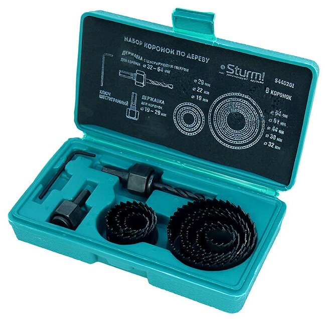 5440201 Коронки по дереву набор 8ед d=19/22/29/32/38/44/51мм, кейс, Sturm!