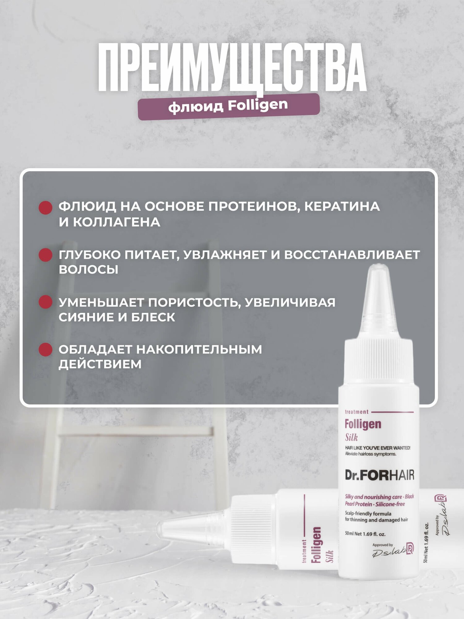 Флюид для интенсивного восстановления сухих, пористых и поврежденных волос Folligen Silk Dr. For Hair, 50 мл информация: