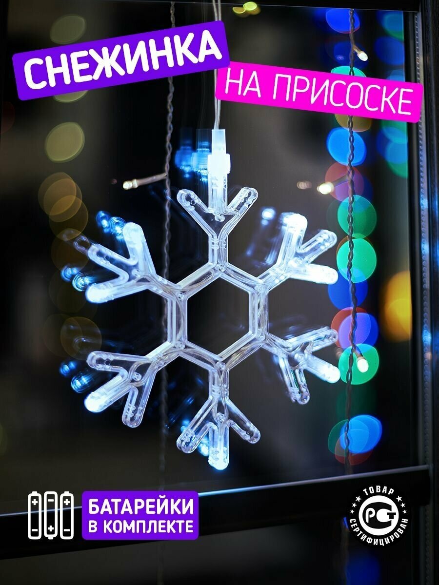 Фигура фигурка Снежинка 19 см Neon-Night елочная подвесная новогодняя светодиодная LED на присоске, на батарейках информация: