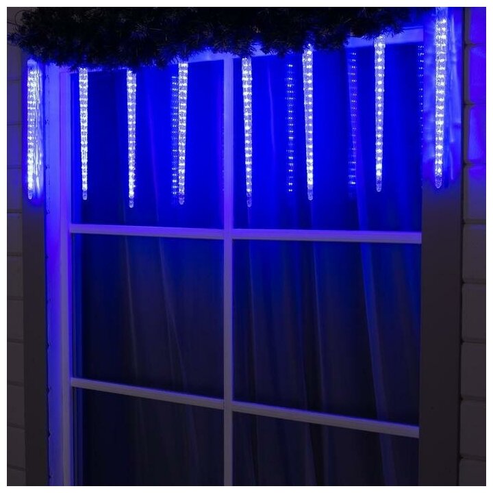 Отзывы на Гирлянда «Сосульки рифленые» 2.5 × 0.42 м, IP65, прозрачная нить, 288 LED, свечение синее с эффектом стекания, 12 В