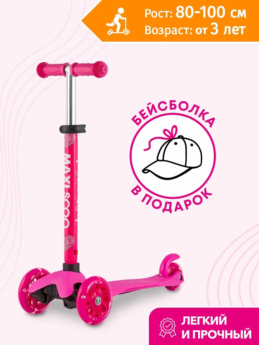 Самокат Maxiscoo "Baby" (2022), со светящимися колесами, розовый