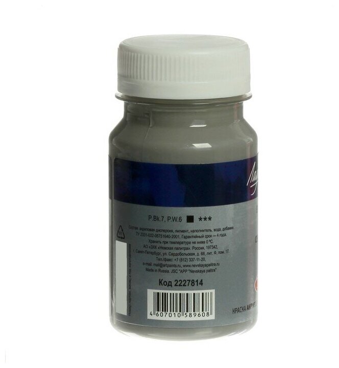 Завод художественных красок «Невская палитра» Краска акриловая художественная в банке 100 мл, ЗХК "Ладога", сажа газовая, 2227801