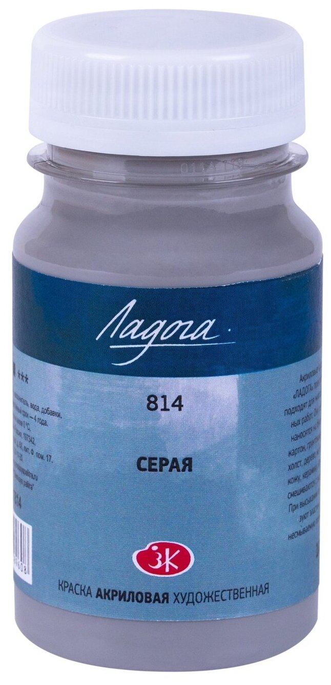 Краска акриловая художественная в тубе 100 мл, ЗХК "Ладога", серая, 2227814 информация: