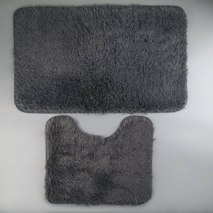 Доляна Набор ковриков для ванной и туалета Доляна «Пушистик», 2 шт: 40×50, 50×80 см, цвет серый