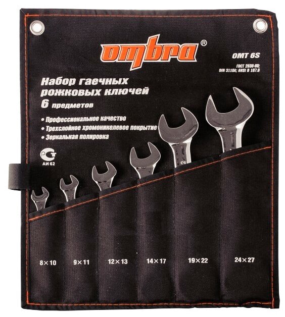 Набор Ключей Рожковых 8-27 Мм. 6 Шт. Ombra OMBRA арт. OMT6S информация: