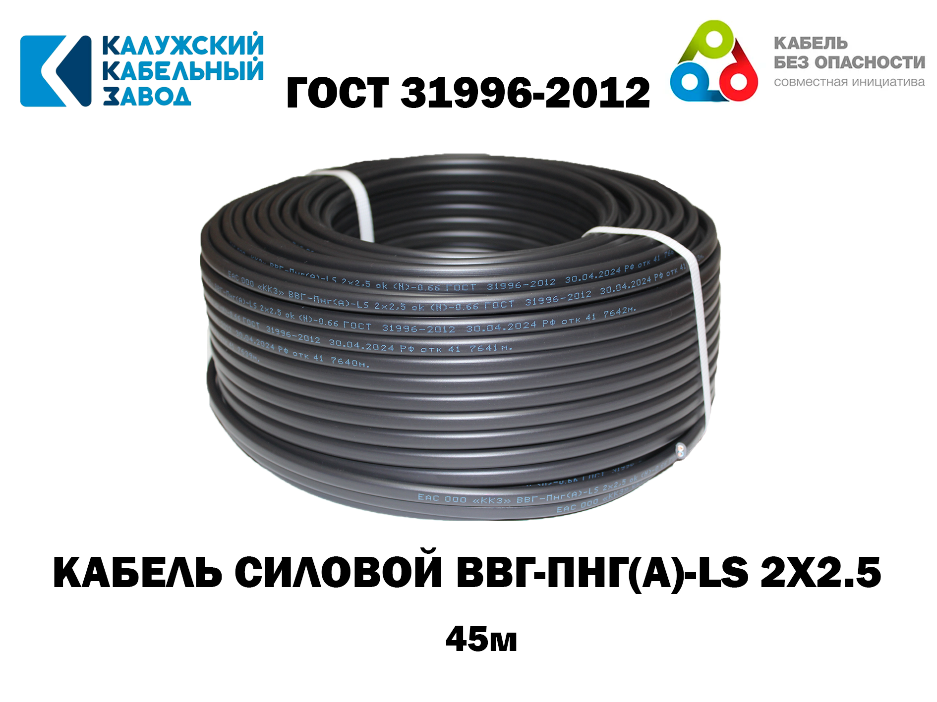 Отзывы на Кабель ВВГ-Пнг(А)-LS 2х2,5 ГОСТ Калужский кабельный завод, 45 метров