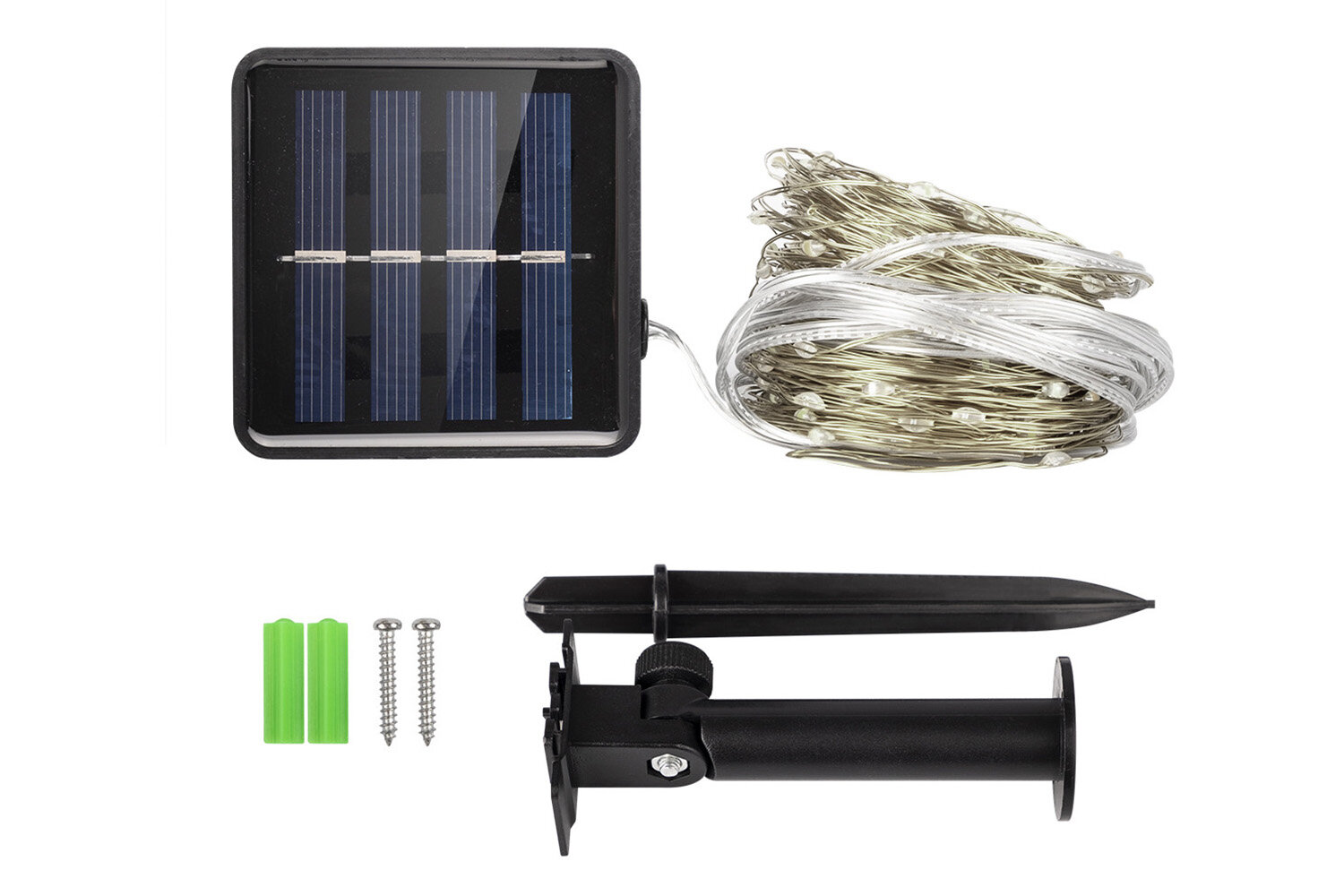 | Комплектация | светильник-гирлянда (светодиоды, солнечная батарея со встроенным аккумулятором), крепеж (два самореза и дюбеля) |