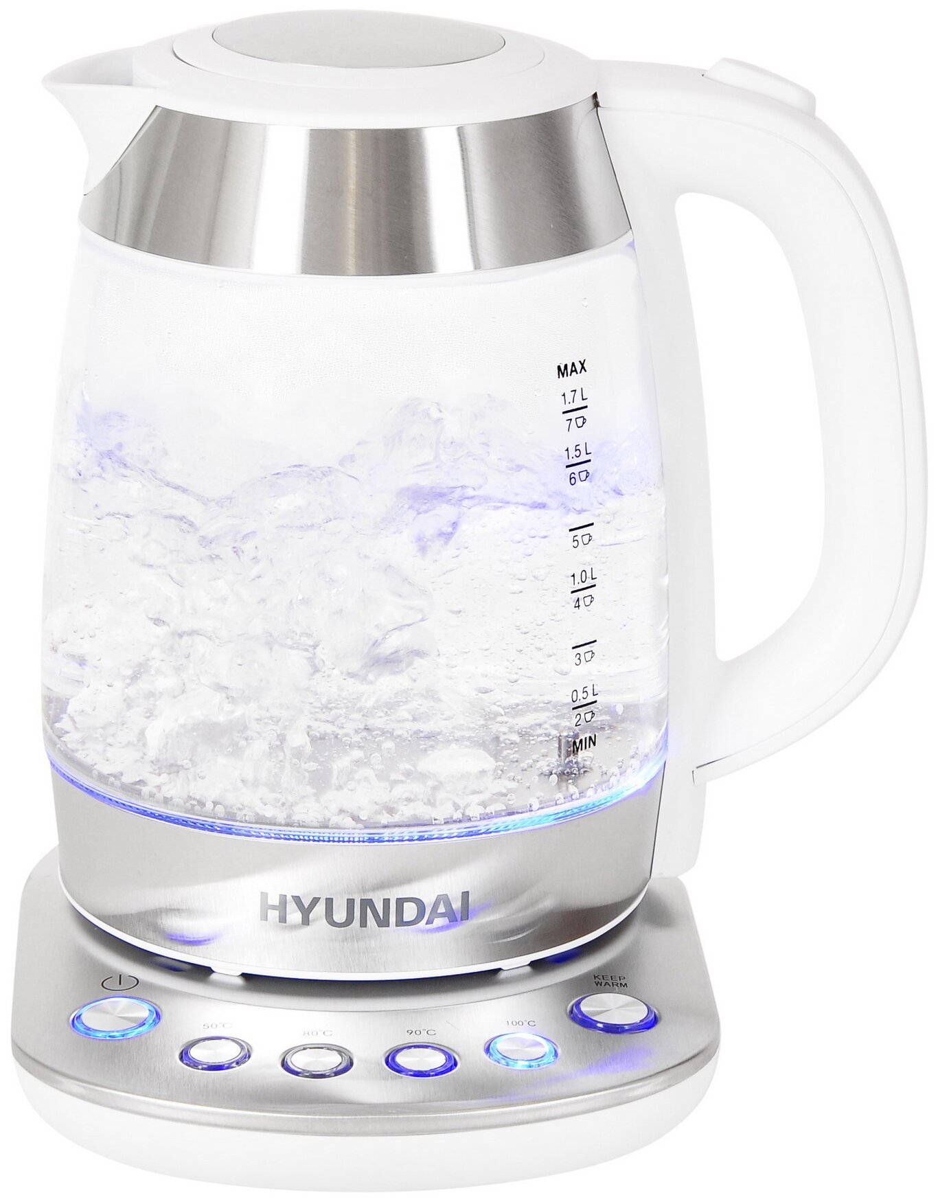 Электрический чайник Hyundai 1.7л. 2200Вт белый/серебристый (корпус: стекло)