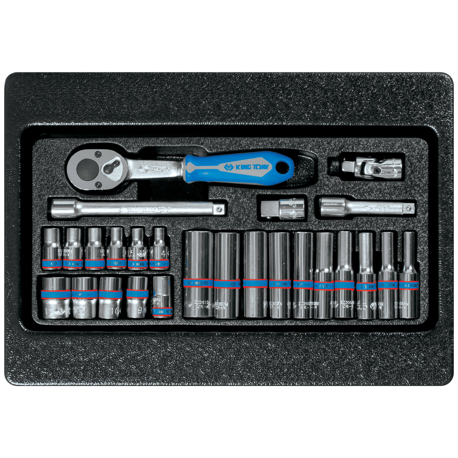 Набор торцевых головок 1/4 с принадлежностями, ложемент, 26 предметов KING TONY 9-2526MR