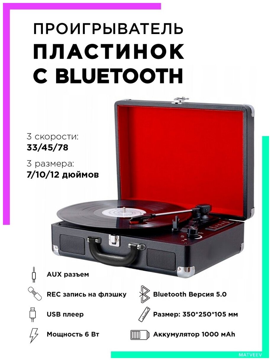 Проигрыватель Виниловых Пластинок Bluetooth С Динамиками Портативный Поворотным