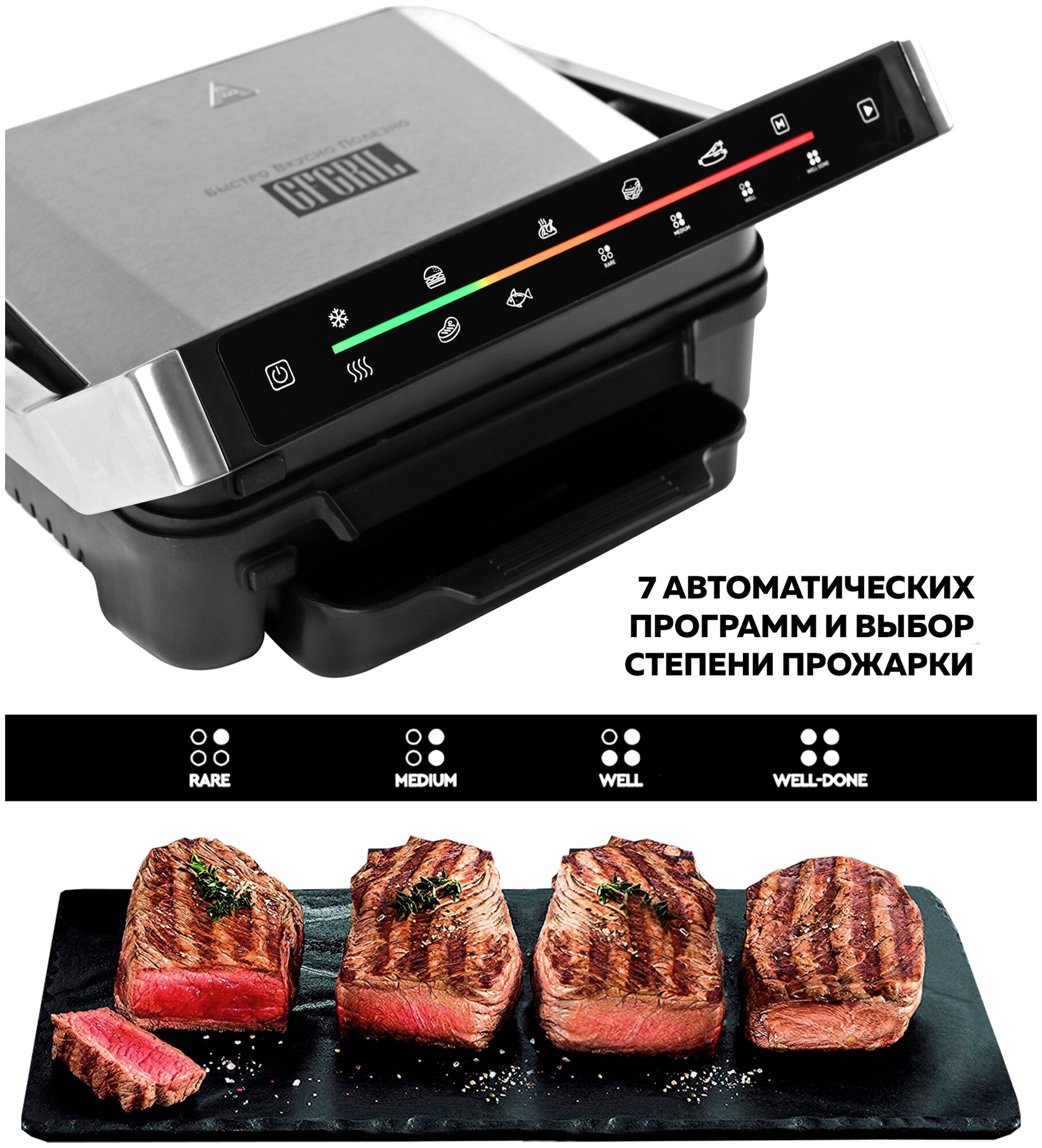 10 цен на GFGRIL Электрический гриль GFGRIL GF-1500, съемные панели, сенсорное управление, 7 программ, 4 степени прожарки / компактный электрогриль GF-1500