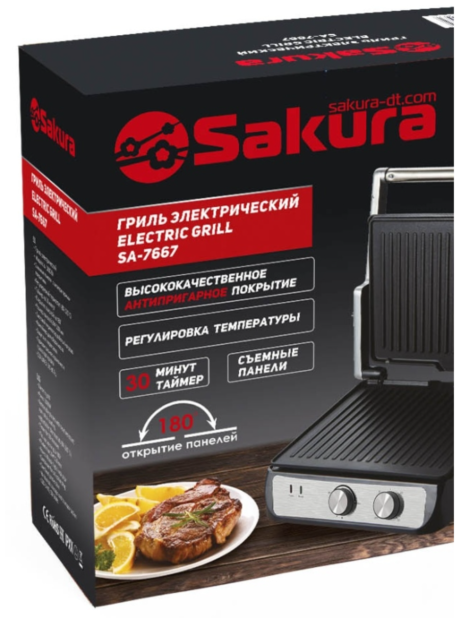 10 цен на Электрогриль Sakura SA-7667 2000 Вт антипригар.покрытие, съемные панели