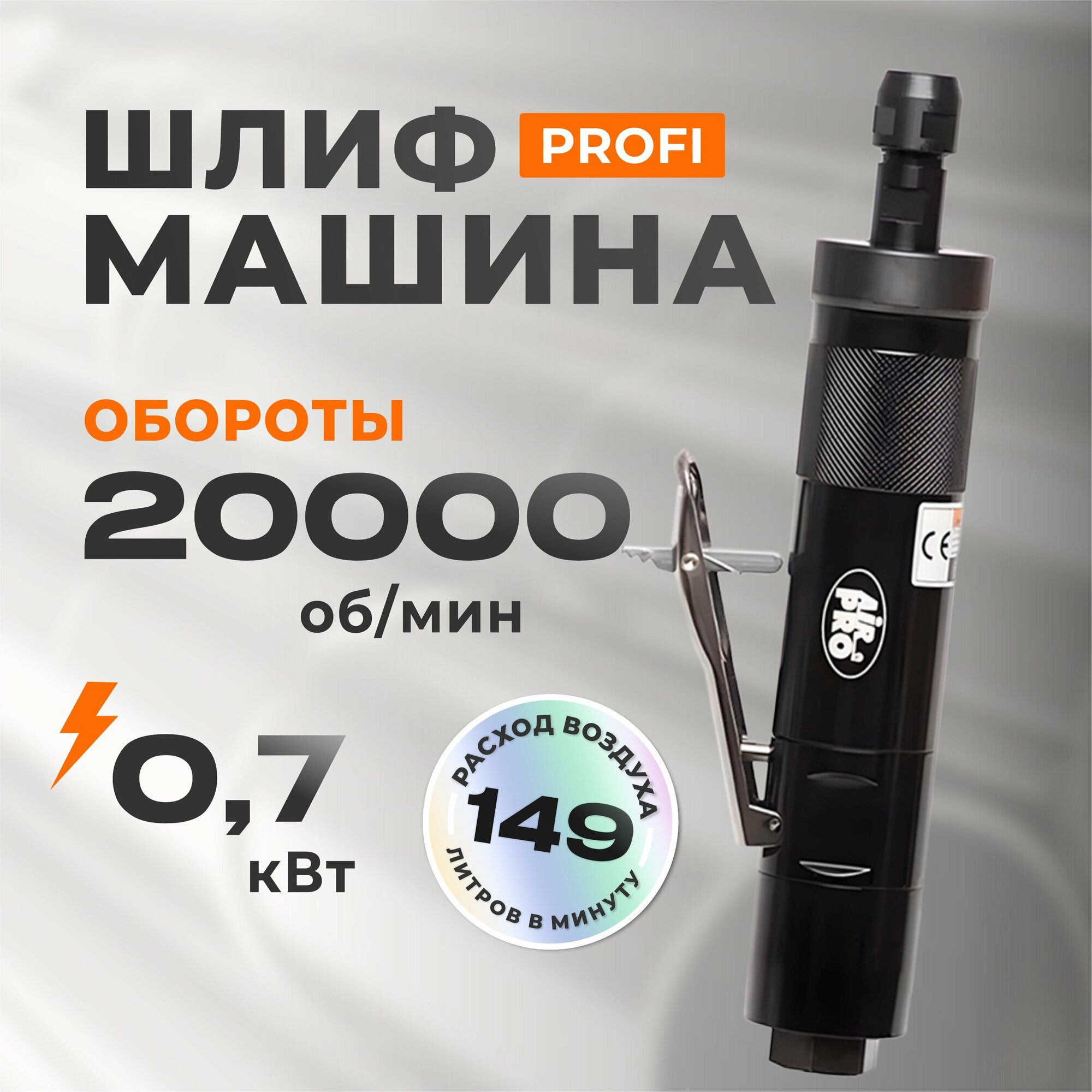 Airpro Шлифмашина прямая цанговая пневматическая SA5419M 6 мм; 20000 об/мин; 0,74 кВт; 0,8 кг
