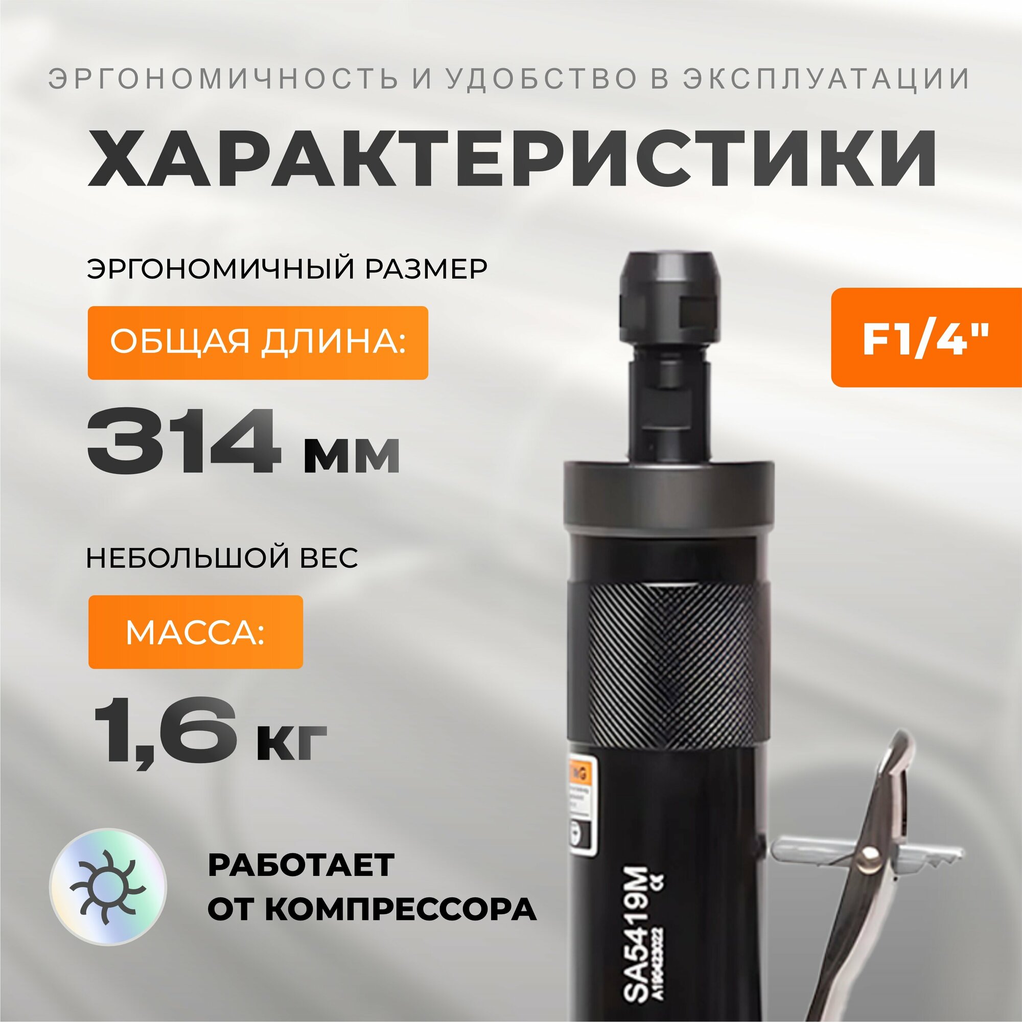 Шлифмашина пневматическая прямая цанговая SA5419M AirPro информация: