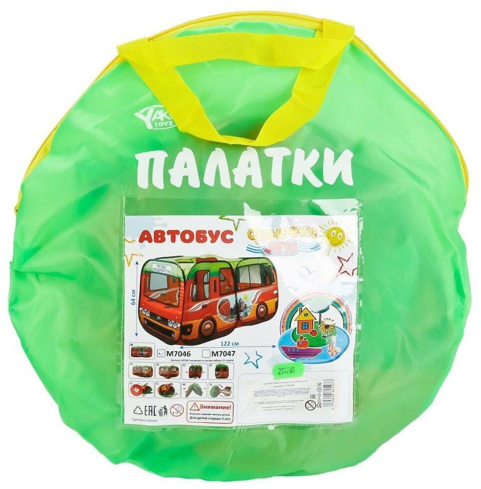 Палатка-автобус Yako toys серия: Солнечное лето, "Москва-Владивосток", в сумке на молнии (Ф86076) информация: