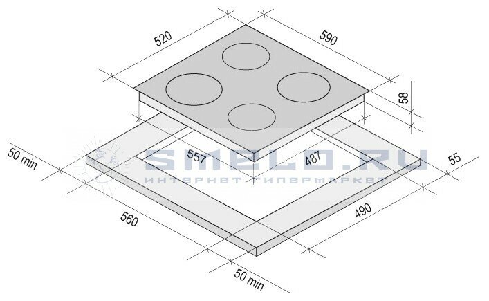 | Безопасность | защитное отключение конфорок / кнопка блокировки панели / индикатор остаточного тепла |