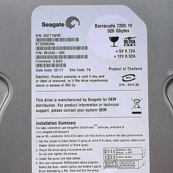 Носитель информации HDD Seagate 320Gb, IDE, 3.5", 7200, 16Mb buffer, Barracuda информация: