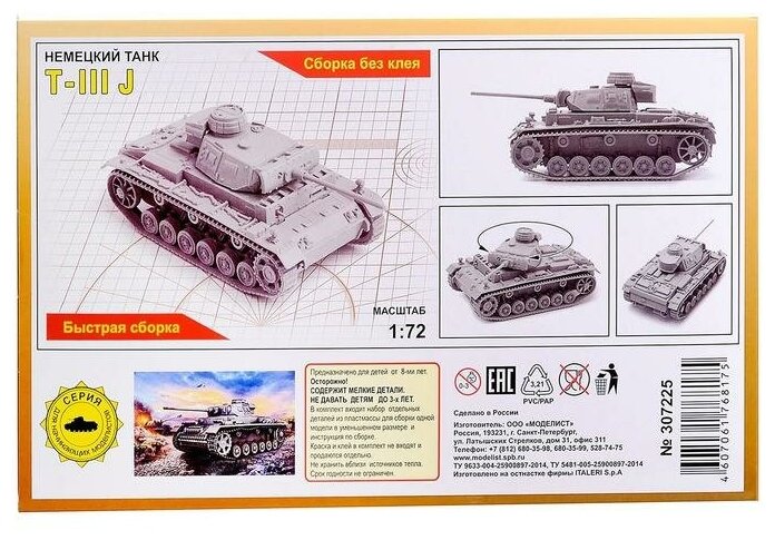 Сборная модель «Немецкий танк Т-IIIJ», масштаб 1:72 (1шт.) информация:
