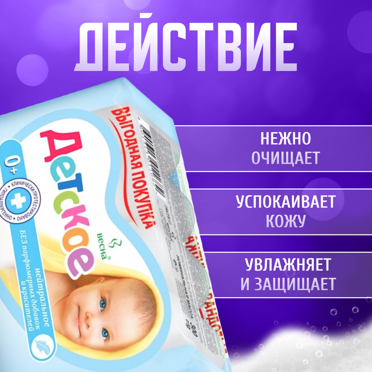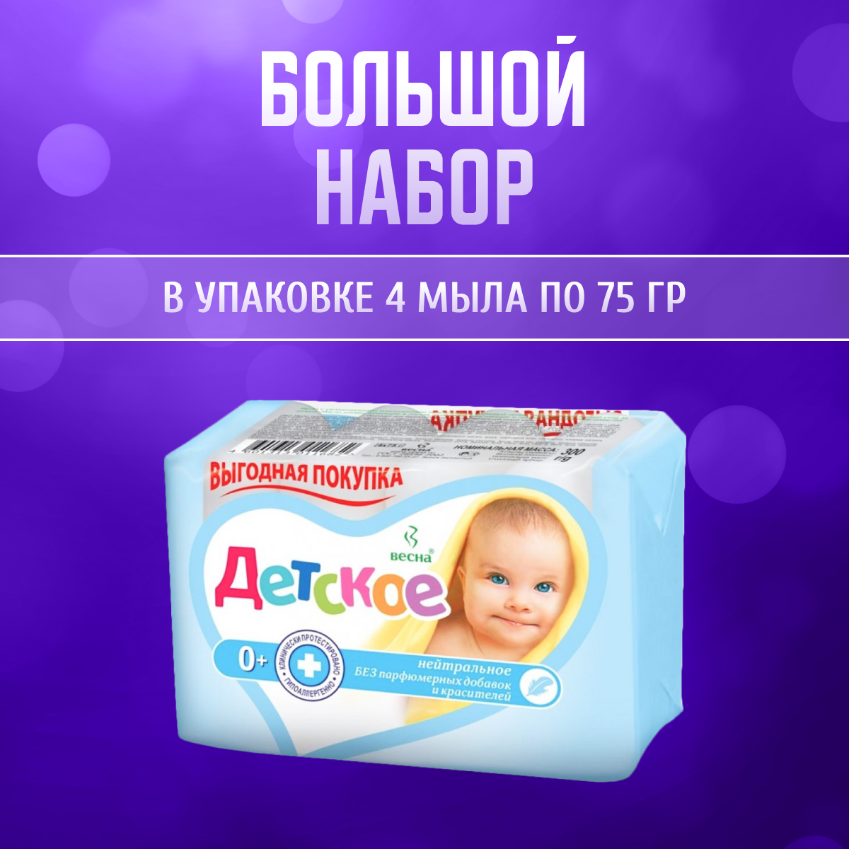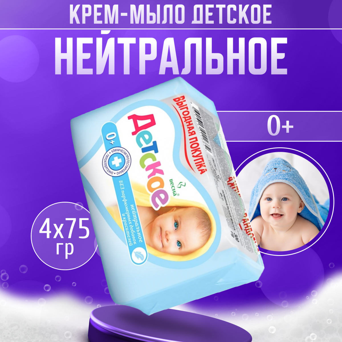 ПКК Весна Мыло детское нейтральное твердое туалетное гипоаллергенное натуральное антибактериальное 4 шт по 75г информация: