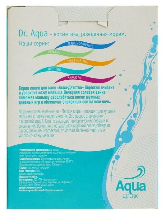Dr. Aqua Соль для ванн детская морская природная "Первое море", 450 гр