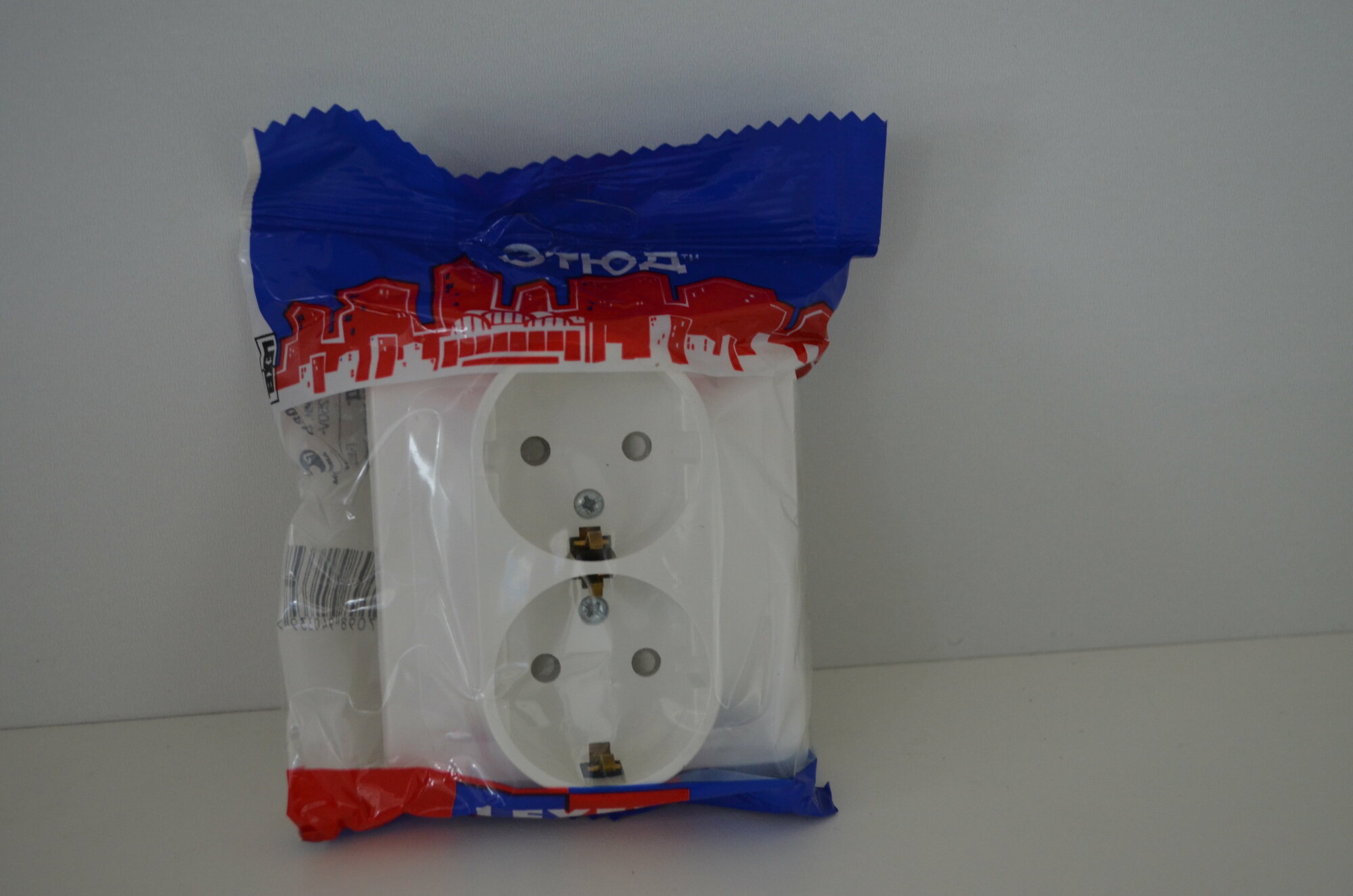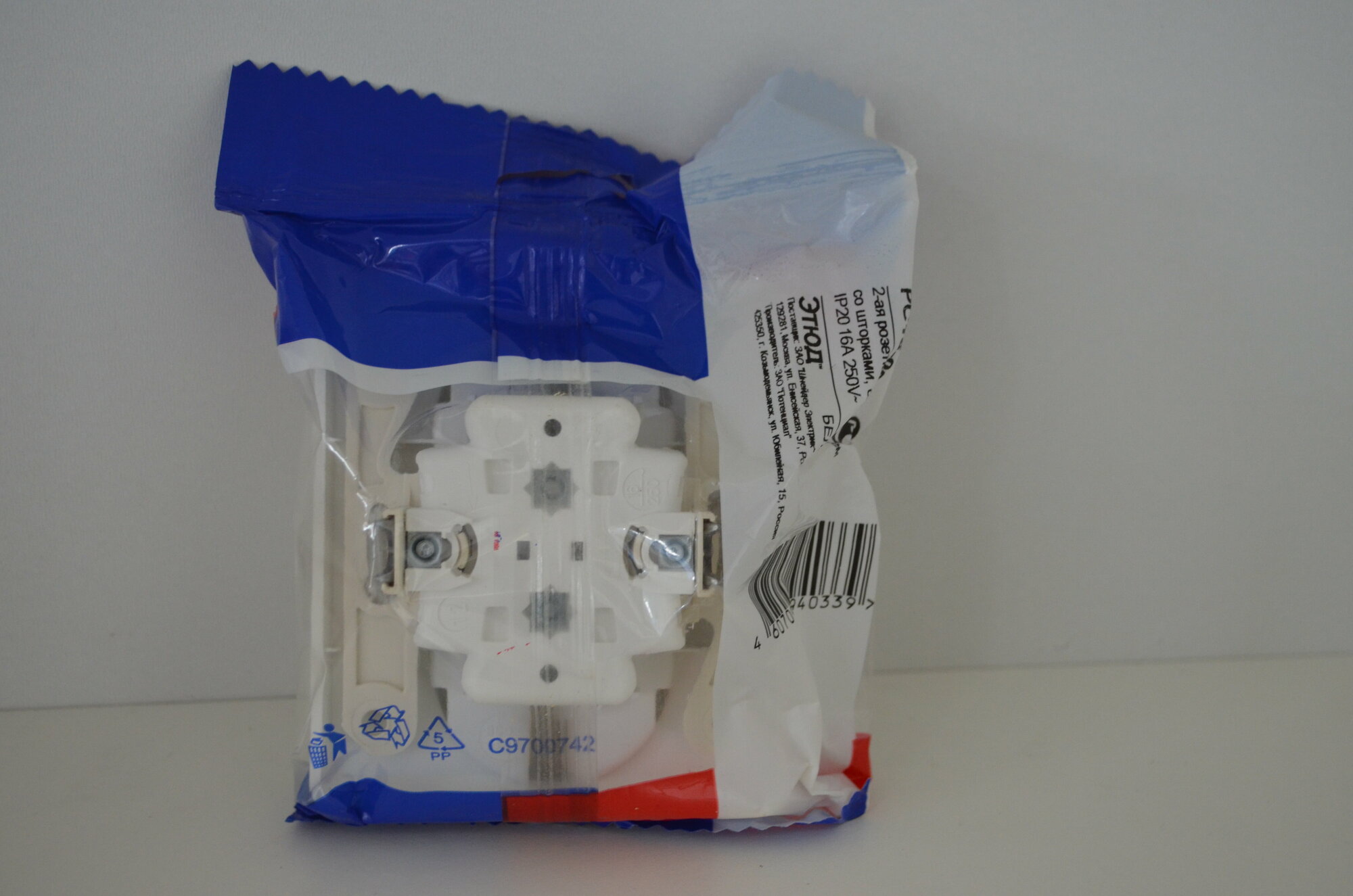 Розетка двойная 2м с заземлением со шторками Этюд белый встроенный монтаж (Schneider Electric), арт. PC16-008B 338 ₽