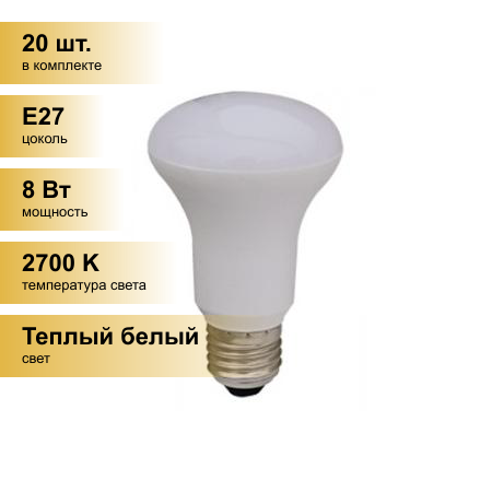 (20 шт.) Светодиодная лампочка Ecola R63 E27 8W 2700K 2K 102x63 Premium G7QW80ELC информация: