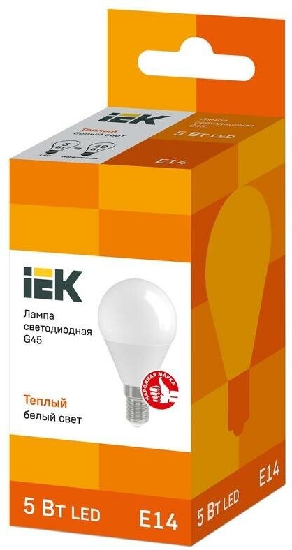Лампа светодиодная ECO G45 5Вт шар 3000К тепл. бел. E14 450лм 230-240В, IEK LLE-G45-5-230-30-E14 (10 шт.) информация:
