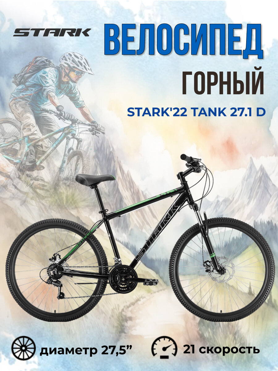 Велосипед Stark Tank 27.1 D (2022) (Велосипед Stark'22 Tank 27.1 D черный/зеленый 18", HQ-0005100) 22 990 ₽