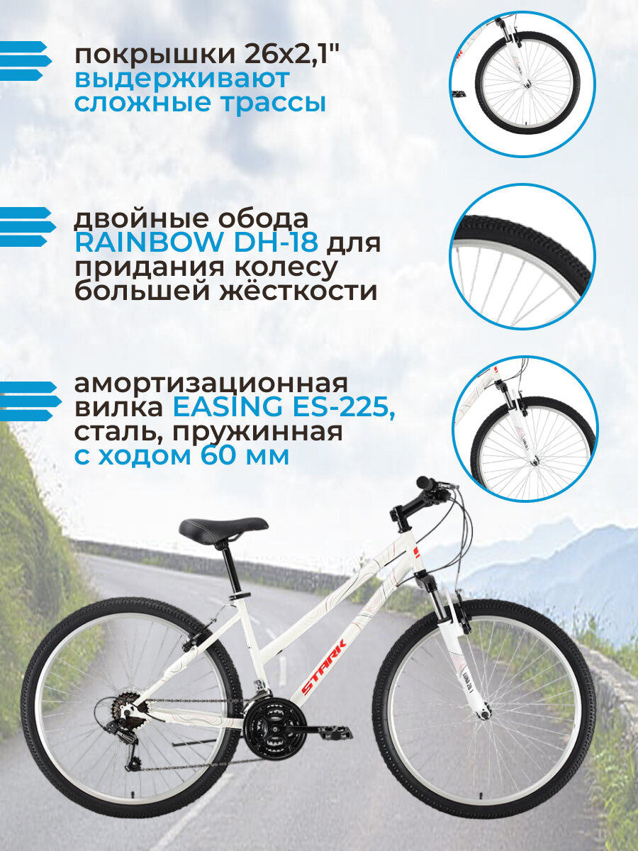 Отзывы на Женский горный велосипед Stark'22 Luna 26.1 V Steel бело-красный колеса 26", 21 скорость, рама XS (14.5"), 2022 год